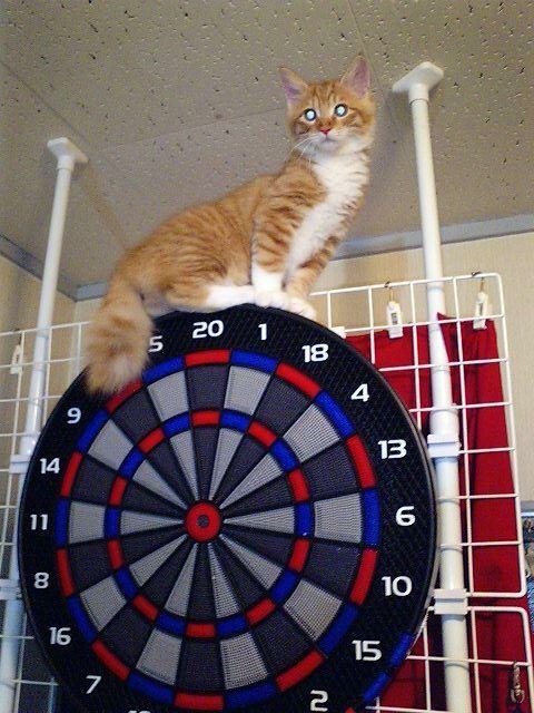 ダーツボードの上が大好きな猫でしたw
