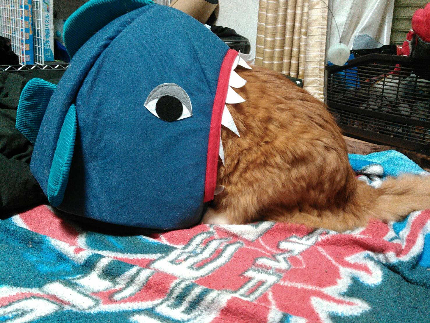 ついに我が家のチョウチンアンコウが猫の捕食に成功しました!!