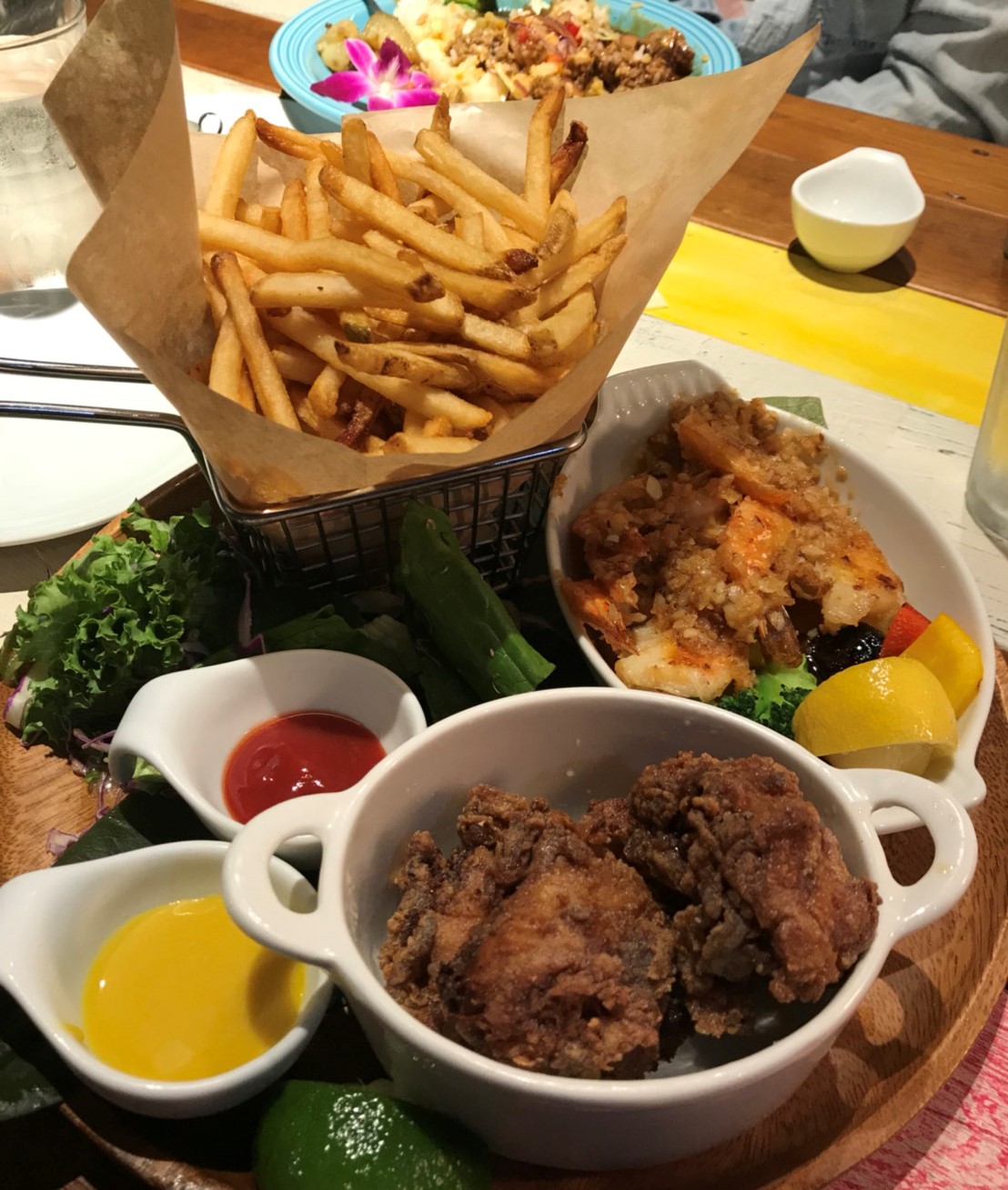 モチコチキン・ガーリックシュリンプ・ポテトの盛り合わせです!