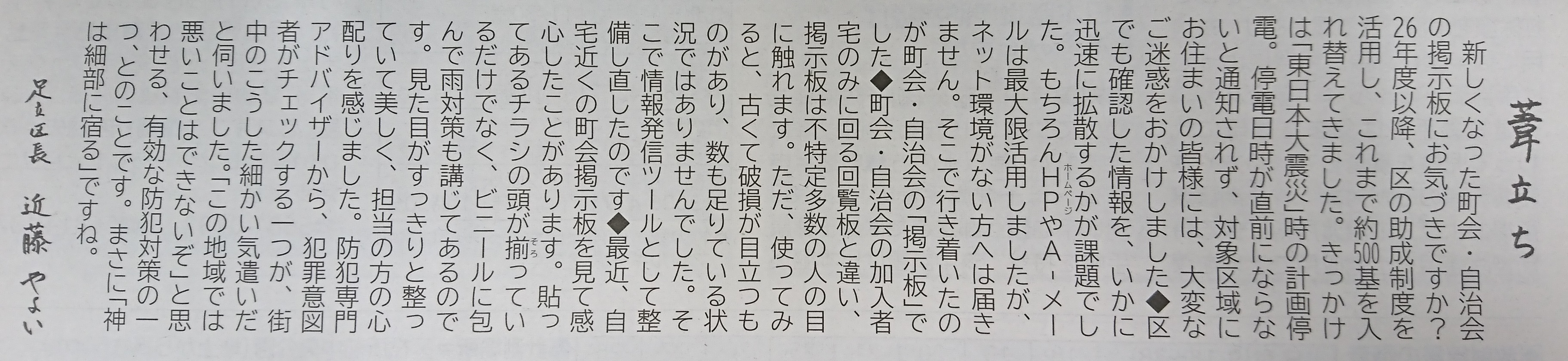 自治会の掲示板についてのコラムなのですが