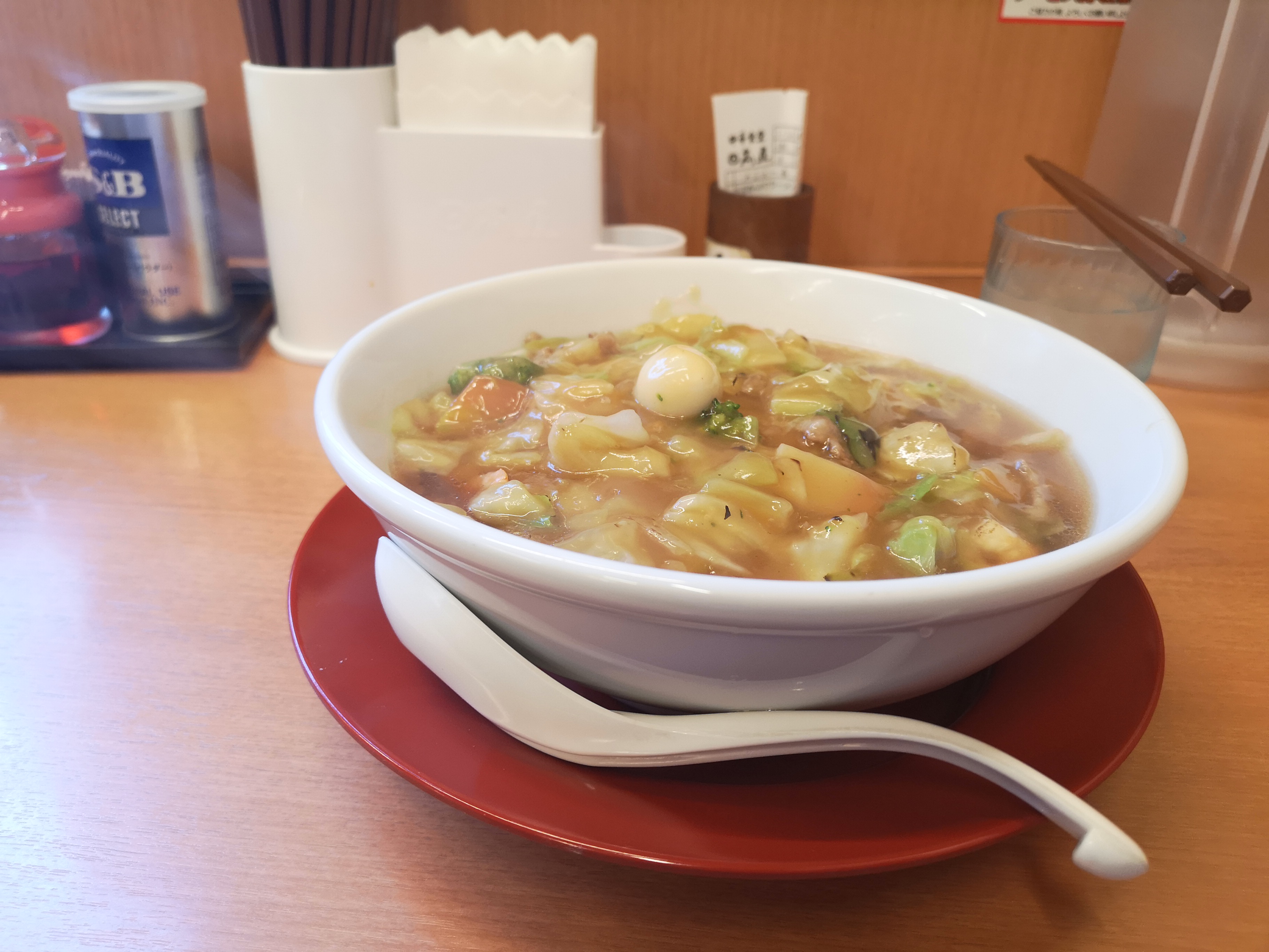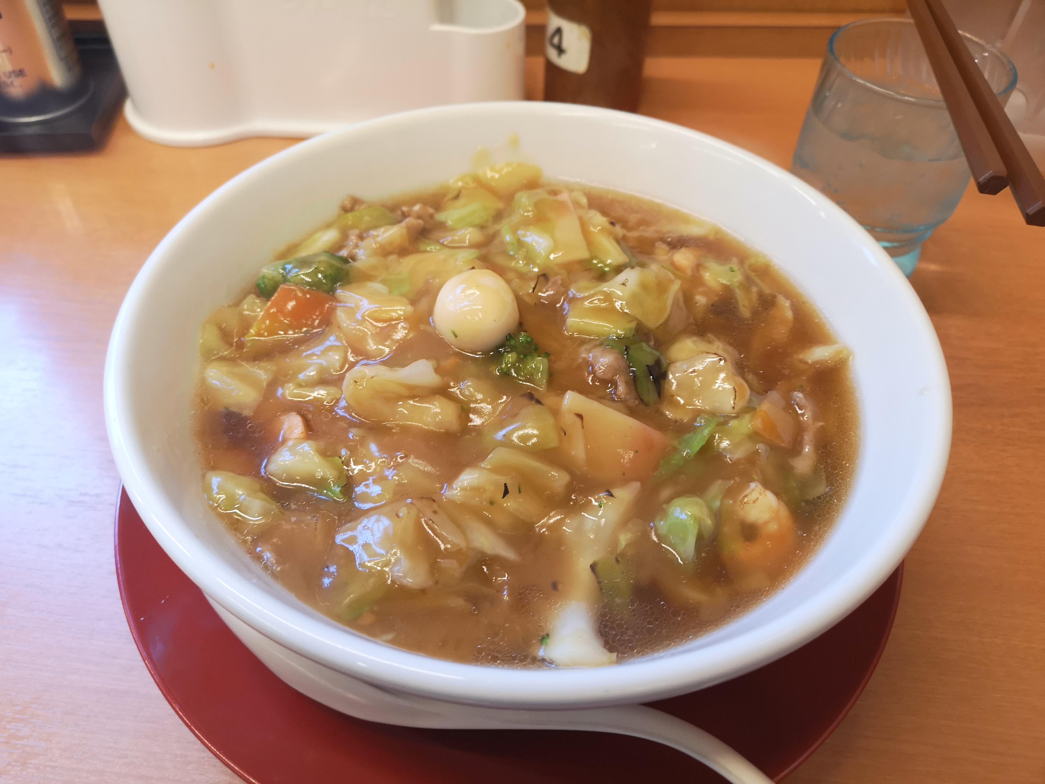 こんにちはnakanoです。 今日はランチ「日高屋」さんの五目あんかけラーメンにしました~健康をかんがえ少しでも野菜を取ろうと思いこれにしました。 とても美味しく頂きました ではまた次回お会いしましょう。