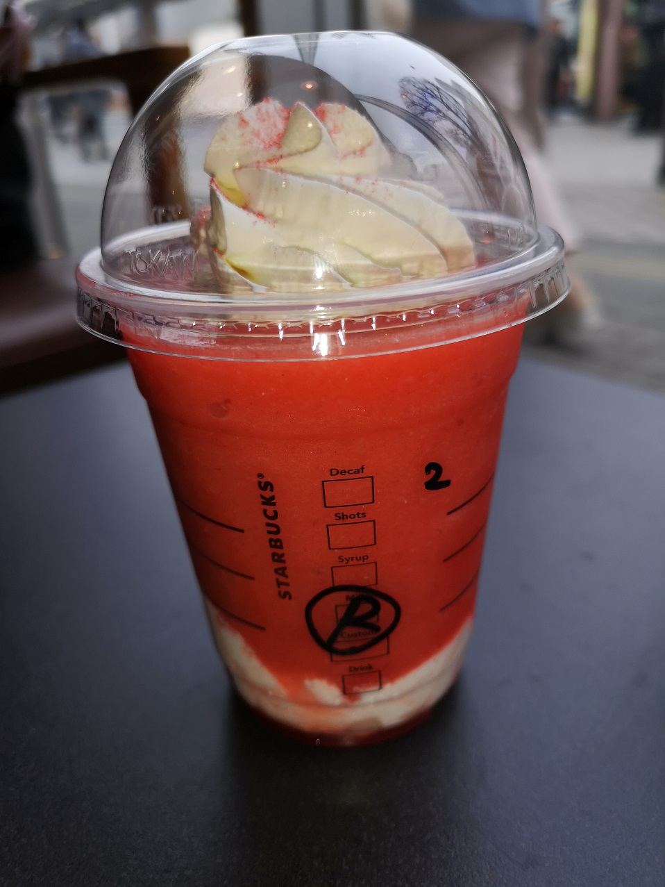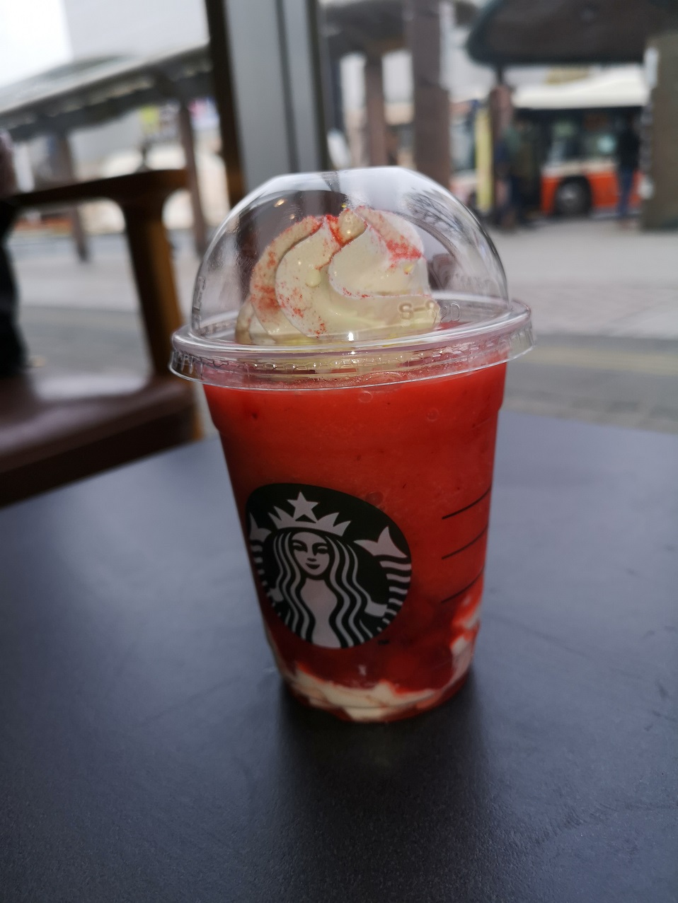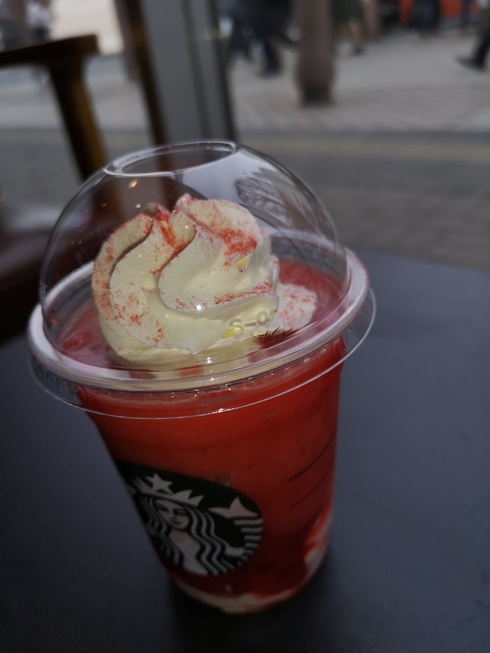 こんにちはnakanoです。 今回は前回[ホワイト]でしたのでストロベリーマッチ・フラペチーノレッドにしてみました。 レッドはイチゴ感満載のフラペチーノでした。イチゴソースにパウダーが全体にマッチした甘くもあり酸味もありの美味しいドリンクでした。 人気のフラペチーノみたいで日曜日に行った時は完売致しておりました。 それでは皆様次回お会いしましょう。