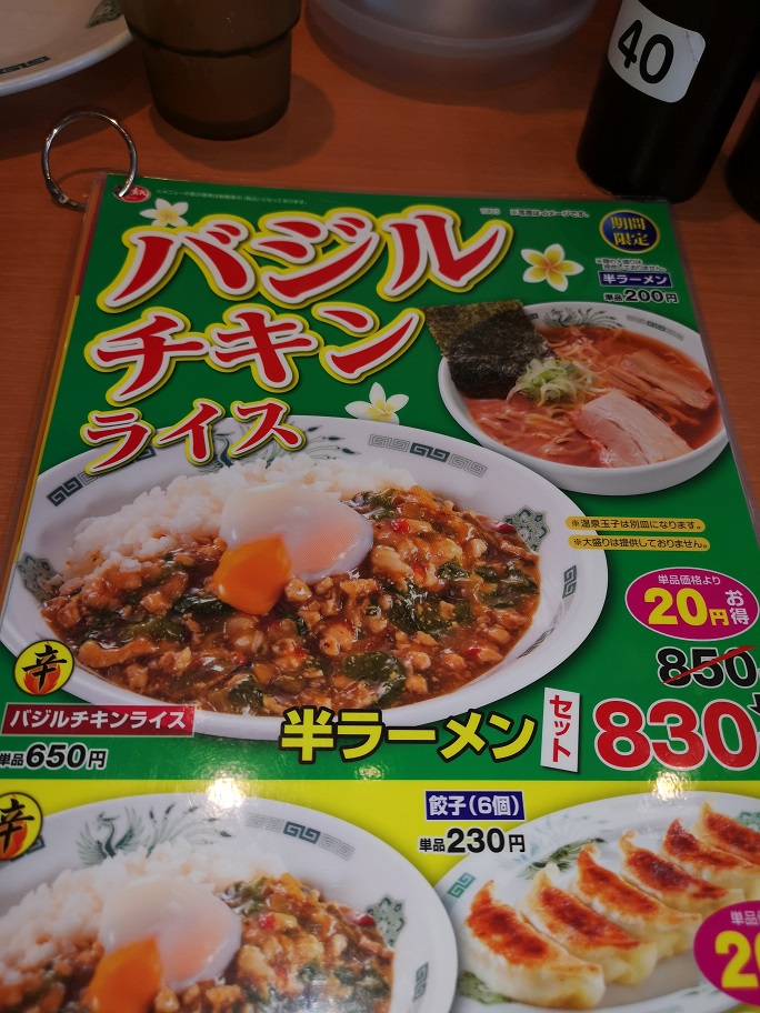 こんにちはnakanoです。 本日のランチは日高屋さんの「バジルチキンのセット」です。 メニューの写真と現物の写真は若干色が薄いように見えますが味はしっかりと味付けしてあり、満足してお店を後にすることができました それでは皆様次回お会いしましょう。