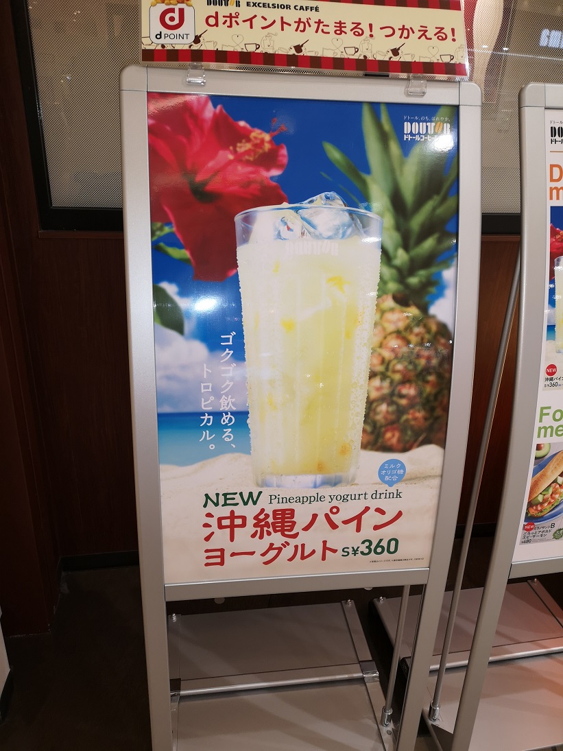 こんにちはnakanoです。 本日は以前から気になってたドトールコーヒーさんの沖縄パインヨーグルトです。 お味の方は、ヨーグルトに缶詰パイナップルのシロップを混ぜて上品にしたような味でした。 それでは皆様次回お会いしましょう。