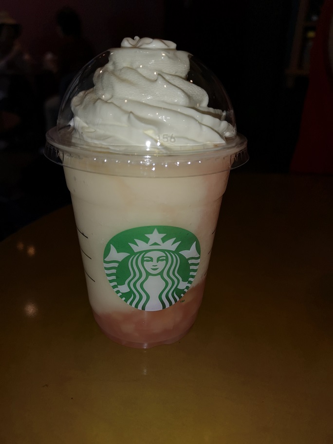 こんにちはnakanoです。 休日のコーヒーブレイクにまたまたスターバックスコーヒーさんにお邪魔しました。 今回のドリンクはピーチオンザビーチフラペチーノです。 お味の方はピーチの果肉がストローから滑り出すと桃を食べている食感になります。少し甘めだとは思いますが甘党の私には大変おいしゅうございました。 それでは皆様次回お会いしましょう。