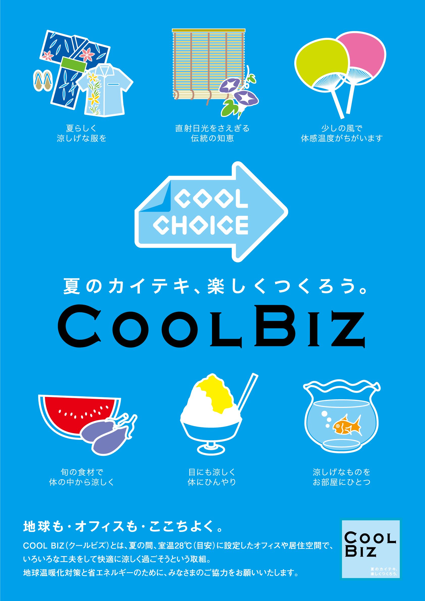 実施期間中の社員は「ノーネクタイ・ノージャケット」等の軽装で業務につきますことをご理解いただきますようお願い申し上げます。