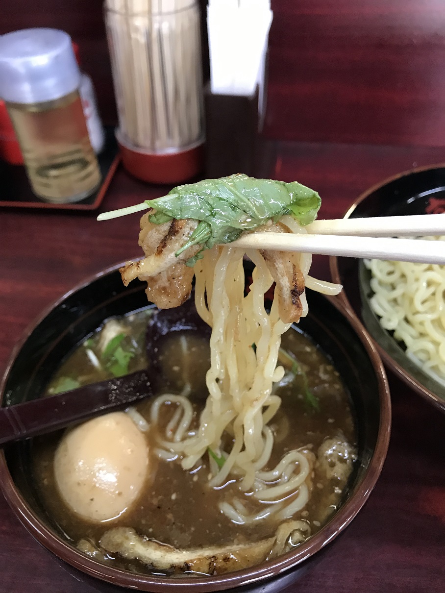 麺はコシのある中太ちぢれ麺でスープがよく絡み、つるっとしているので喉越しもばっちりです。